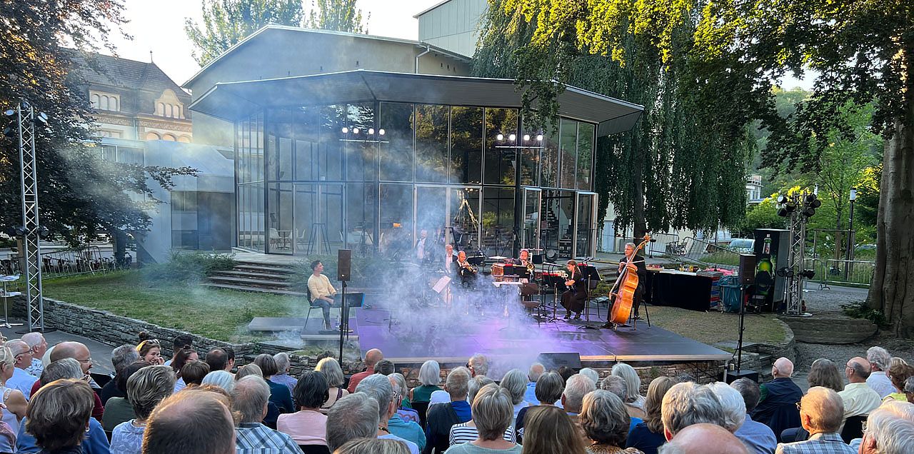 Die NEUE KURKAPELLE UND SIMON LIBSIG setzen ihre erfolgreiche Kollaboration fort. Genau vier Jahre zuvor im Juli 2022 führten sie im Freilicht-Theater ihren «himmlischen» Freilicht-Abend ZUM TEUFEL NOCHMAL! mit Musik von Igor Stravinsky und Wynton Marsalis und neuen Texten von Simon Libsig mit grossem Erfolg auf.